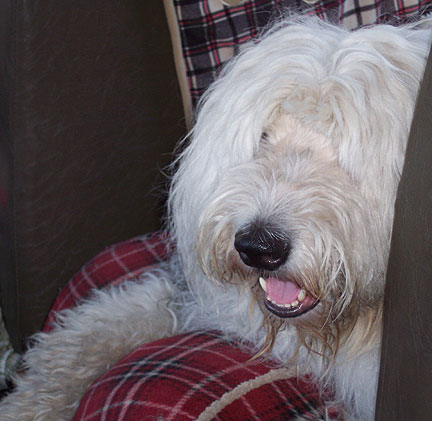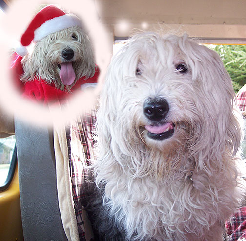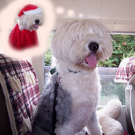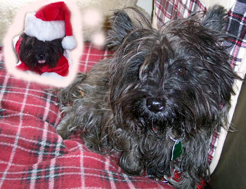 "I see Santa!" exclaimed Scruffy.  "Santa is very furry, and has a pink tongue!"