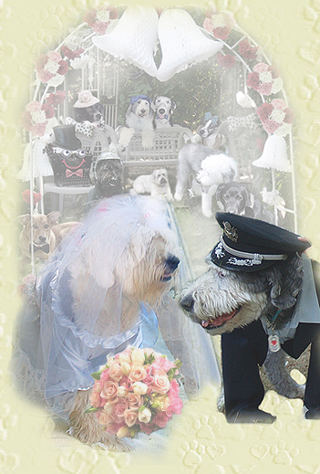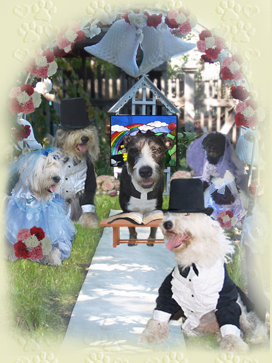 in front of their beautiful stained glass window.