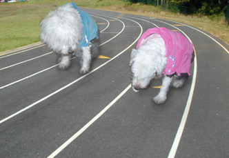 "It's time to go home," said Cricket, out of breath. She licked her sore paws and wondered how many times they had been around the track.
