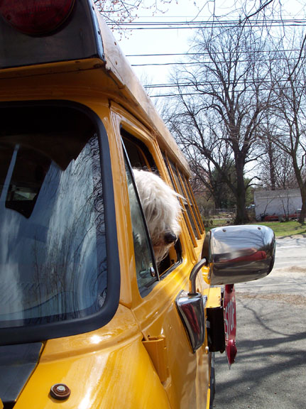 A little while later, Henry and Patrick hopped in to the Wiggle Bus, for their very sad, but very sweet trip. The terriers stayed at home because they were too little to help with a big tree.