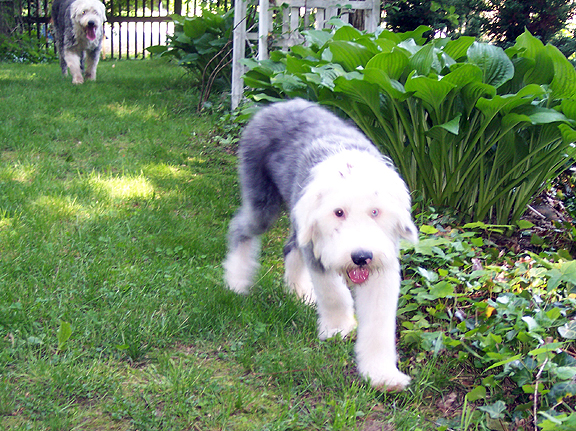 The little puppy sniffed the flowers in Guinney's garden.  "I'm sorry your mommy is in heaven too," said the puppy.  "It seems funny to have a dad."