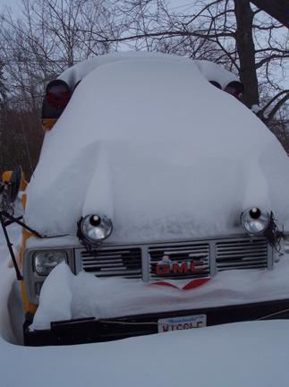 While they were looking out at the snow, they were surprised to hear a truck pull up to the house.  "How'd that guy get here through the snow?" they wondered.