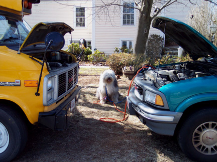 CPR on Wiggle.  After a little while he was able to start her engine and she sounded as good as new.  But poor Wiggle did not look happy.
