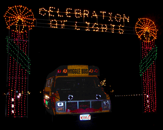 Next Wiggle drove through a tunnel of candy canes.