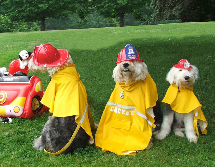 Cricket helped PJ put on his fire coat, and they helped Patrick.