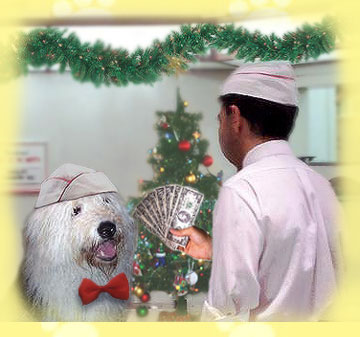 "Don't worry Cricket," Patrick whispered in her ear.  "I bought it with my Christmas BONEus!"