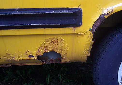 Everywhere the offending rust bubbled away at Wiggle's frame, Michael sawed it off, treated the damage, and custom fit replacement metal.