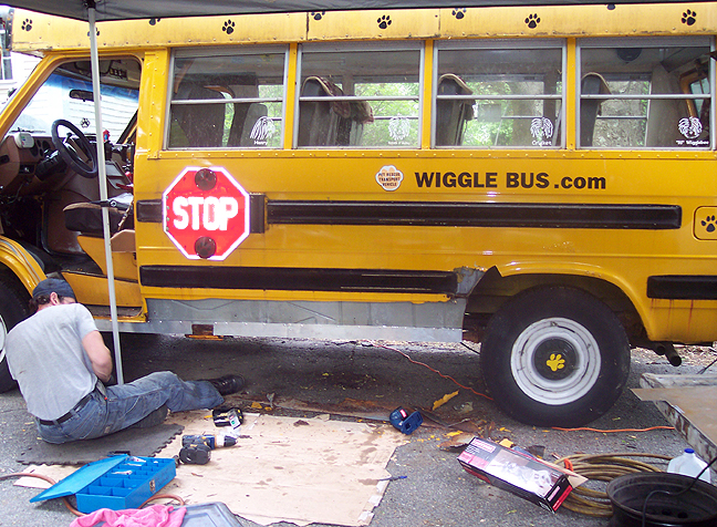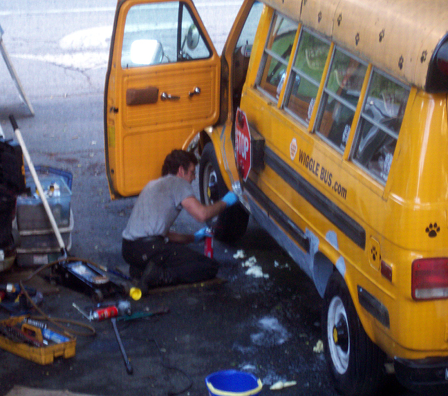 Careful not to wake his sleeping patient, Michael, the Mobile Mechanic, a.k.a. "Bus Doctor" quietly put his tools away.  He left a note for Henry on the driver's seat that read: WIGGLE IS READY FOR HER STICKER!  GOOD LUCK!  Then he quietly drove away.