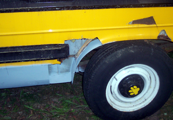 It was dark when Michael finished repairing Wiggle's rust.  He kept his promise to her and worked until she was as good as new.  With only a flashlight to finish his work, he gently put a coat of paint over her gray primer. Michael knew only too well that busses do not like their gray showing.