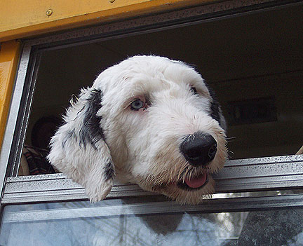 After they said goodbye to the tearful uprights, everyone jumped in to the WiggleBus to drive Hank to the pawphanage to be adopted..
