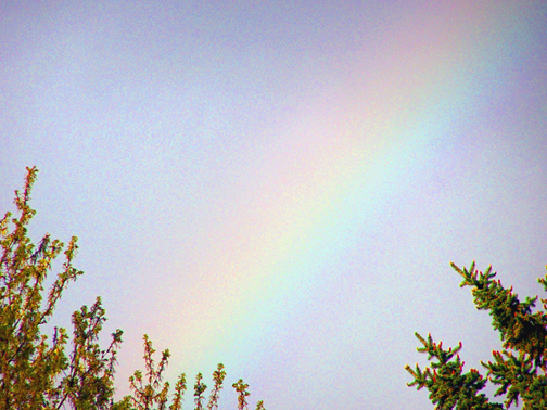 "Look up there!" exclaimed Cricket. "A rainbow!"
