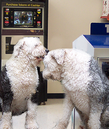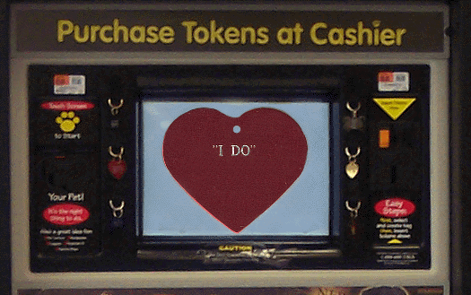 "Well no wedding is complete without your gold tag rings," she the cashier, handing them the fasteners for their wedding tags.