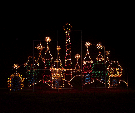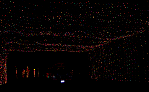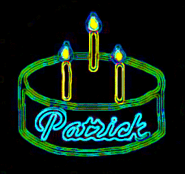 Patrick couldn't believe what he saw next.  At the end of the tunnel of love, there was a birthday cake made out of lights, just for him.