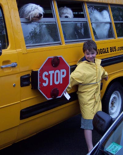 The Boy Henry gave Wiggle a giant hug.  She could not believe her good fortune.  She had missed children so very much, but never before had a child actually hugged her!  She'd even heard them groan sometimes when she was a "School" Bus.  Now that she was a "Wiggle" bus, she was getting her very first hug from a child!  "I wish Guinness could see this," she thought.